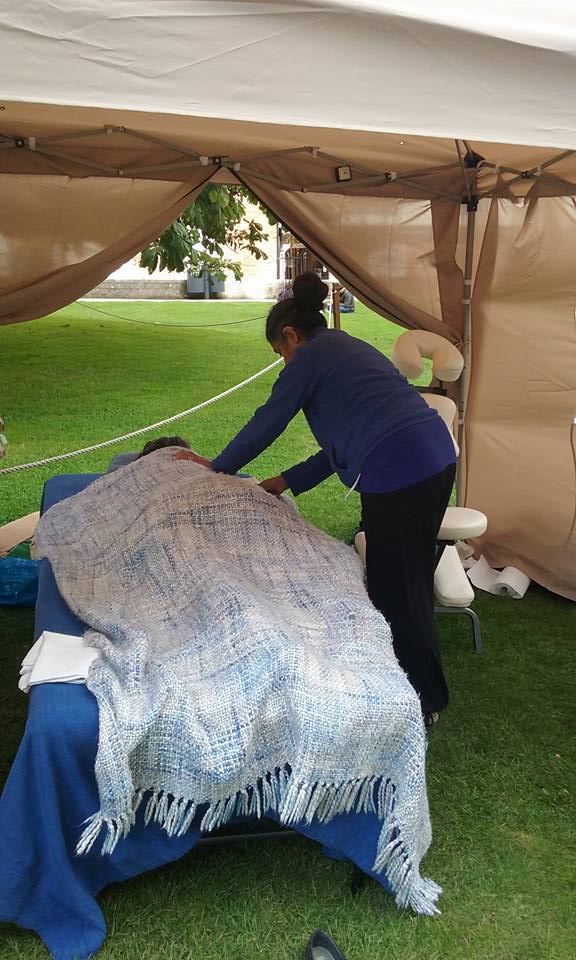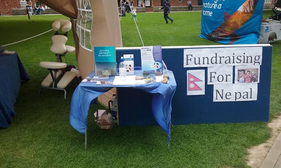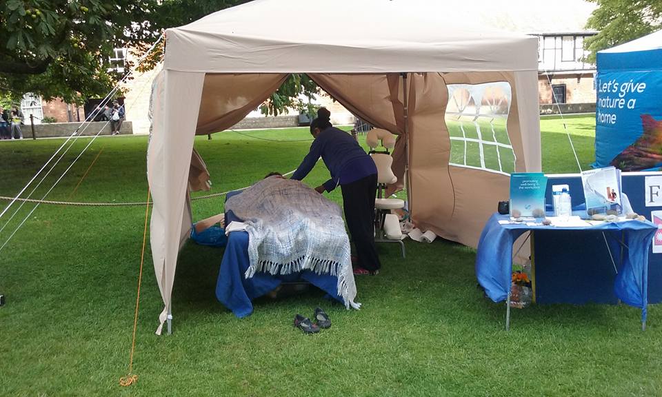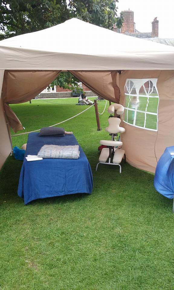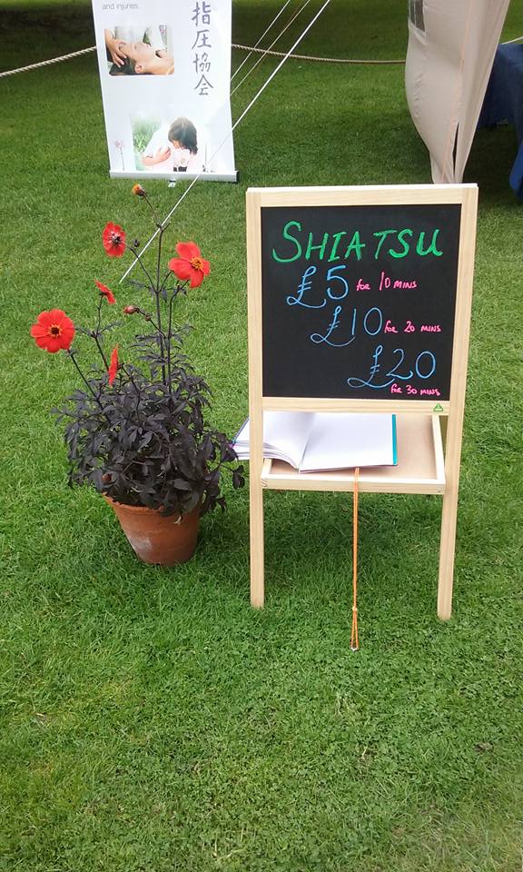 Sandhya & myself had a great time giving Shiatsu’s at the Exeter Green Fair last weekend. We managed to give enough Shiatsu’s to raise £150! This is going to go to Shelterbox Nepal. Apart from it being a very windy day, at the beginning of the day the Gazebo felt more like a kite than a safe haven to give Shiatsu. After getting a few more guy ropes we began giving Shiatsu and continued to pretty much non stop all day. We had a really enjoyable day giving & promoting Shiatsu. I managed to take some photo’s right at the end of the day, once the sun had gone, but at least I got a few!