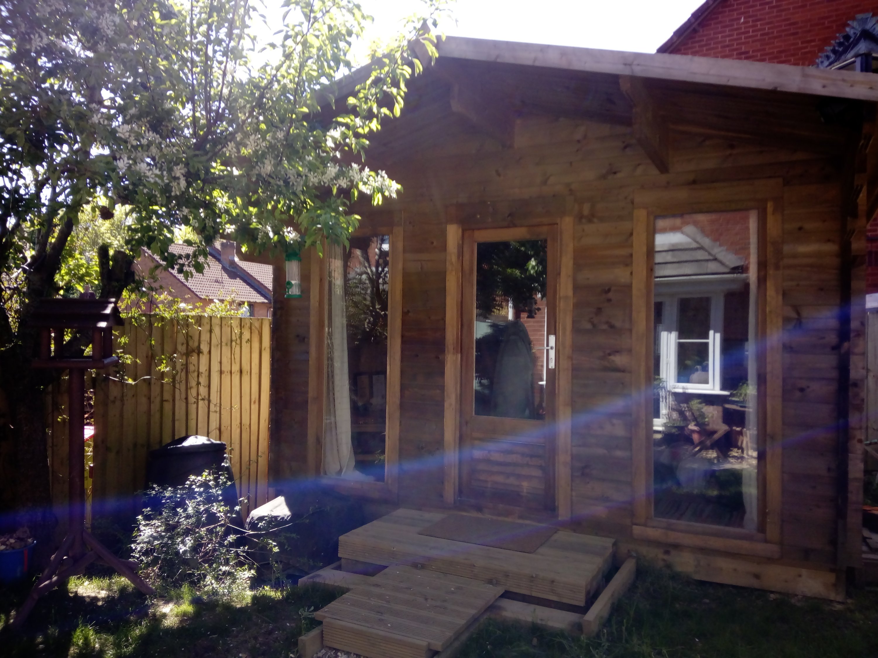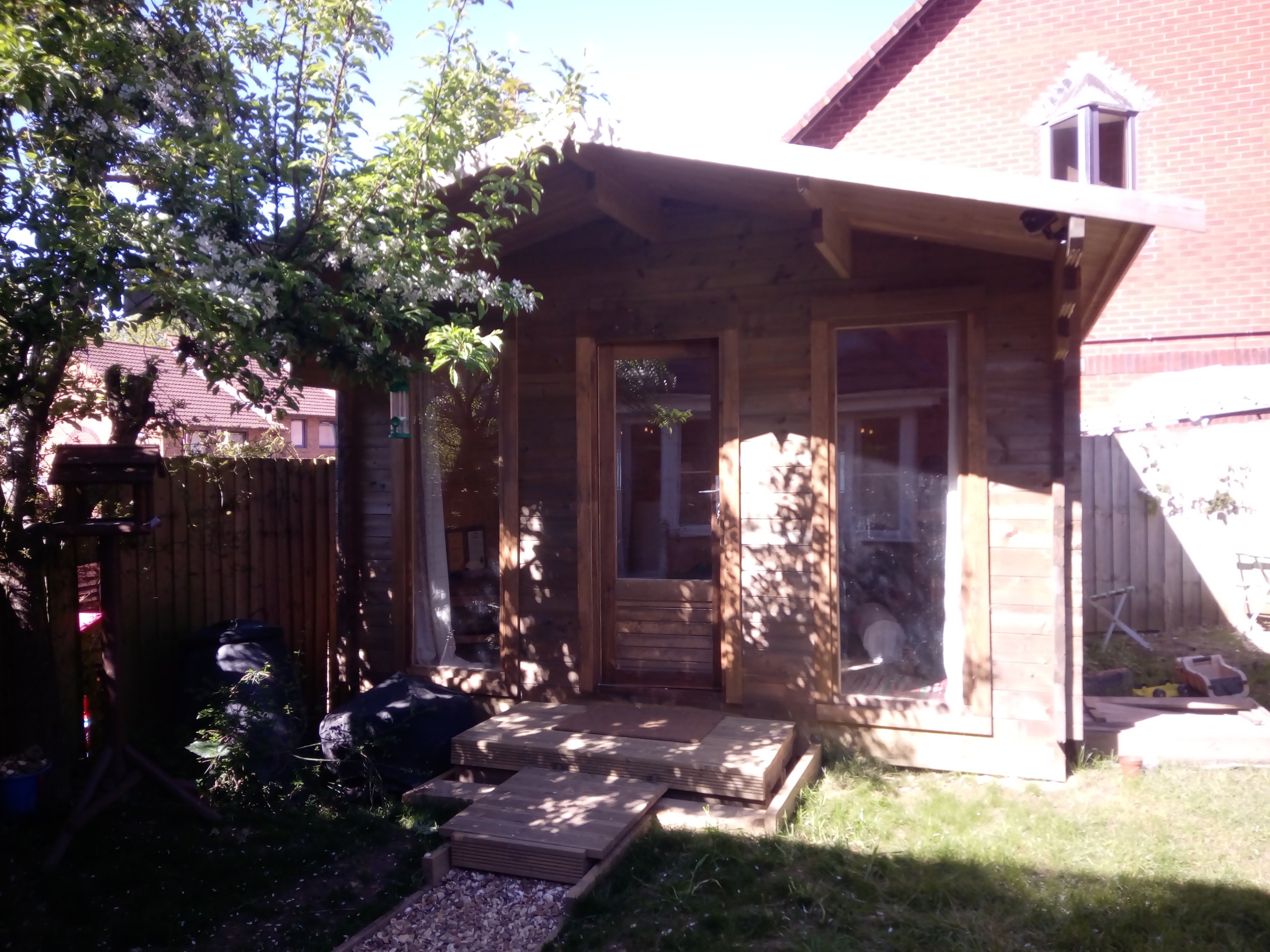 Today the sun is shining & the apple blossom is starting to come out so I took some new photos of the Shiatsu Shed.
