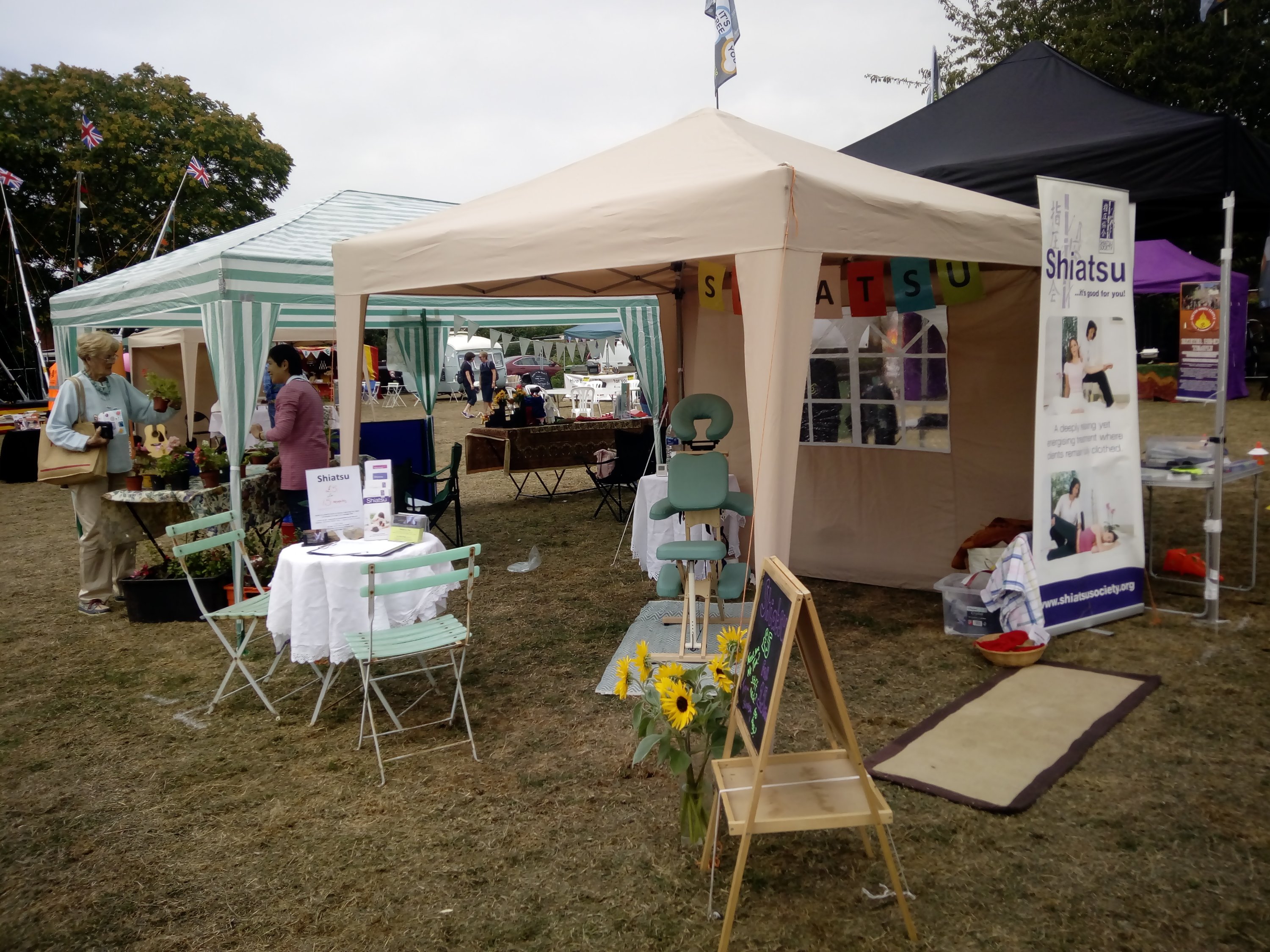 It was a day of stiff necks & pulled muscles. It was great to see people leave after just a short Shiatsu with more mobility in their neck & shoulders or to have some relief from the pain in their muscles.